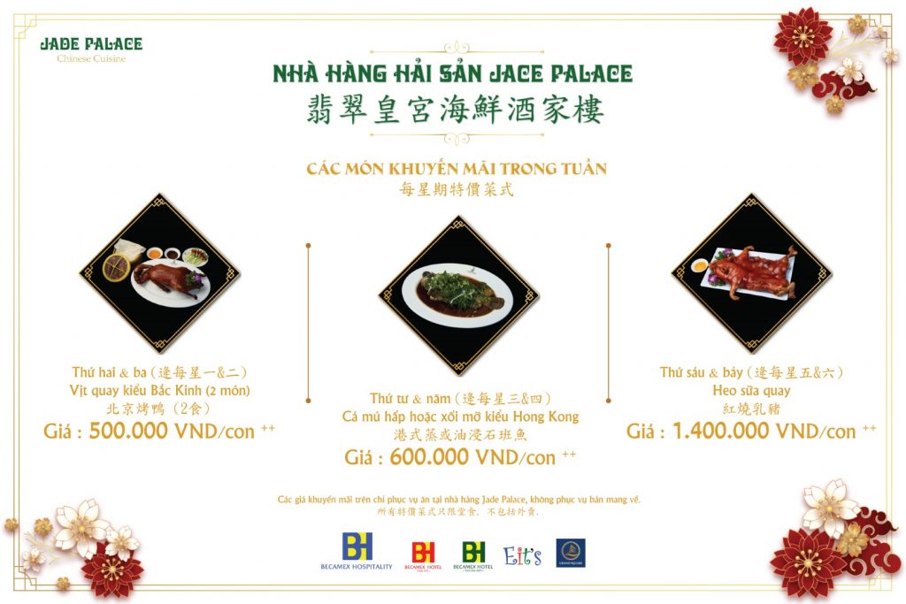 If you are a fan of Chinese dishes, the diverse menu at Jade Palace restaurant will be a place you should not miss on your culinary adventure in Binh Duong. The typical dishes prepared directly by the chef-leading Chinese will make you fall in love.